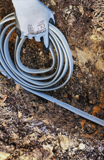 Professional installation of mains cabling from network pillars to your metre box with correct segregation, depth requirements and protection measures.